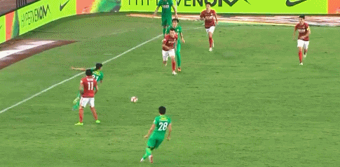 第36分鐘奧古斯托擺脫鄭智帶球突破到禁區(qū)內(nèi),張琳芃忙中出錯(cuò)將他鏟倒,主裁判罰點(diǎn)球,伊爾馬茲操刀主罰一蹴而就,國(guó)安將場(chǎng)上比分追成1-1。