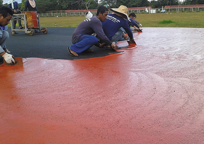 相對于國家標(biāo)準(zhǔn),山東塑膠跑道標(biāo)準(zhǔn)共包括“原材料使用規(guī)范”“施工要求”“驗(yàn)收要求”和“維護(hù)保養(yǎng)規(guī)范”4部分。標(biāo)準(zhǔn)里里明確了塑膠跑道生產(chǎn)過程中允許使用的原材料及助劑的“正面清單”。