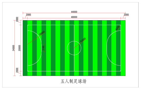 1、標(biāo)準(zhǔn)五人制足球場規(guī)格為:(長)40m*(寬)20m(注明:長不低于40米,寬不低于20米);