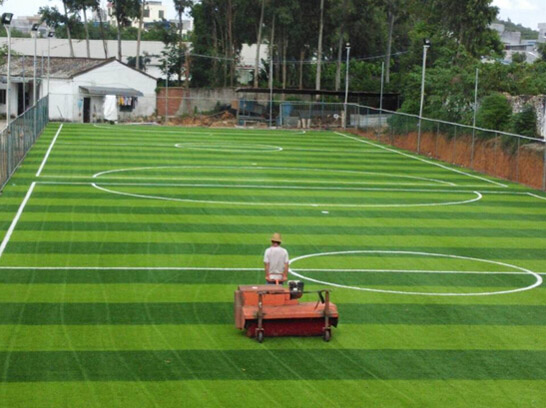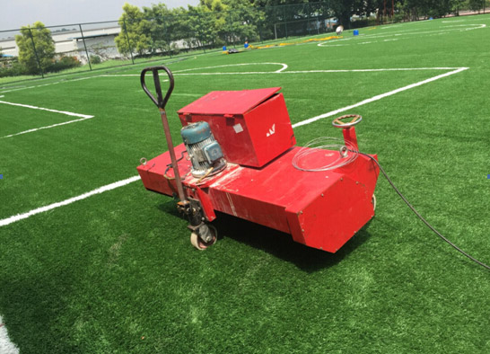 2、必須使用專業(yè)刷草機,刷草機使用重型(500斤)電動刷草機,這樣能夠將輔料刷平,防止出現(xiàn)高低不平的情況。
